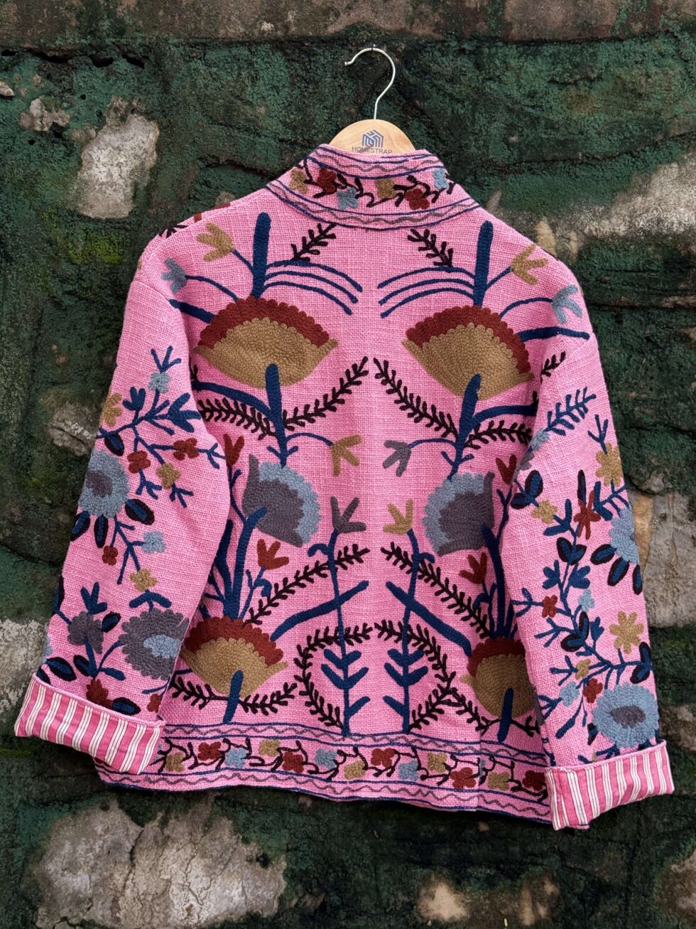 Elevate your festive and ethnic look with this stunning Suzani Embroidered Velvet Jacket. Crafted from premium-quality soft velvet fabric, this jacket offers a luxurious feel and rich texture that enhances every outfit. The intricate Suzani embroidery adds a royal charm and artistic appeal, making it a perfect fusion of traditional craftsmanship and modern style.